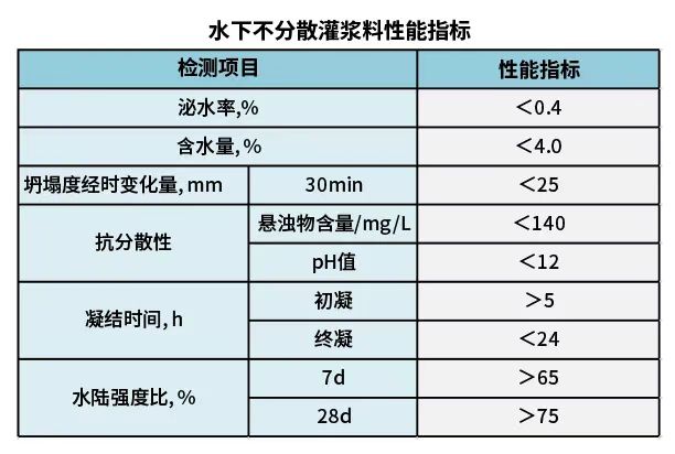 水下不分散灌浆料性能指标如下: